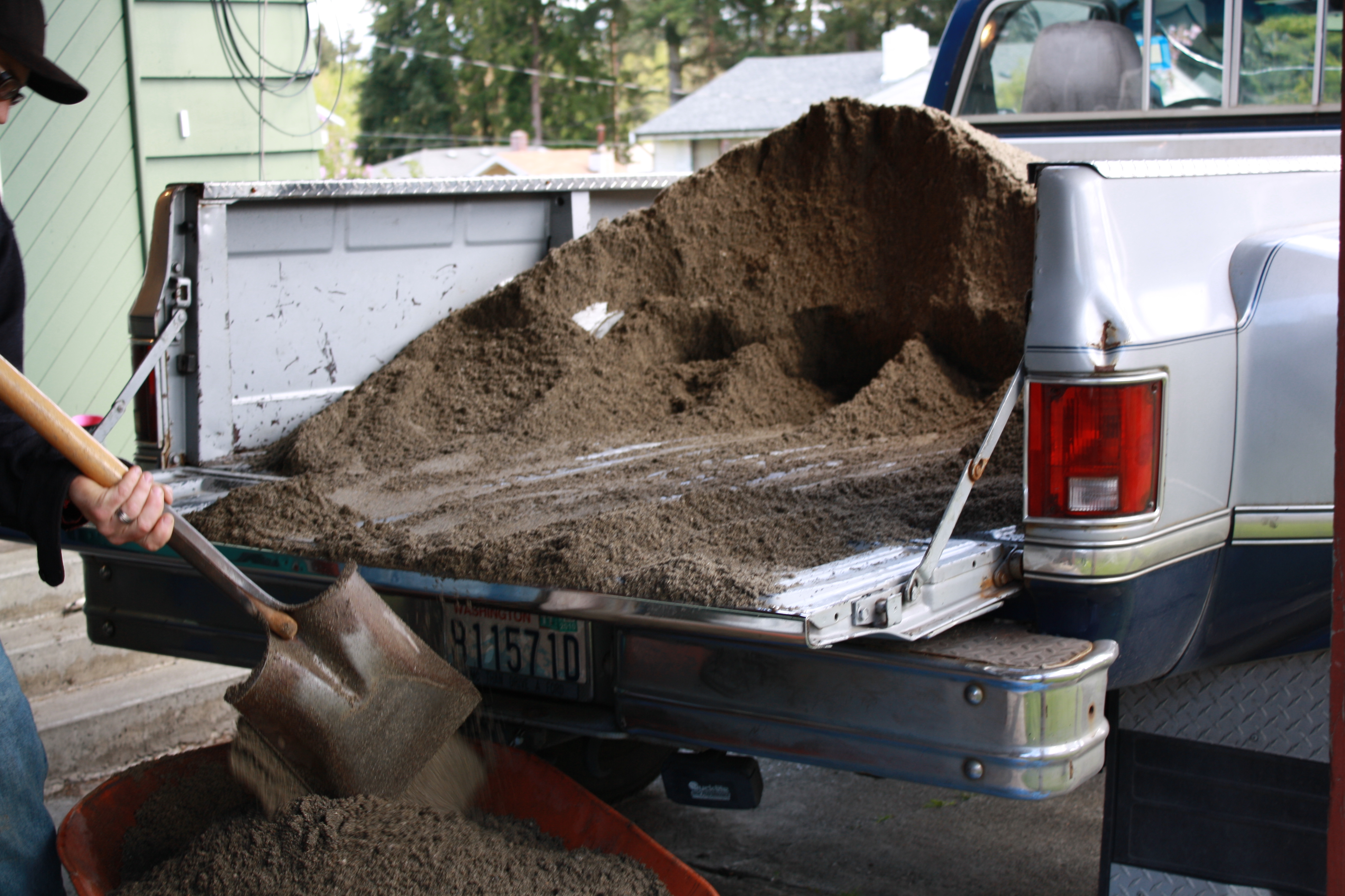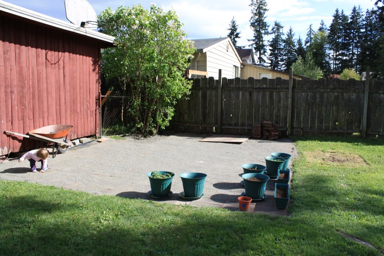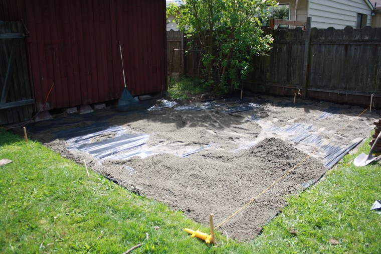 Like I showed in the previous post our back needed a lot of work and we were up for the challenge! We pulled all the old pavers up and cleaned them, then we “leveled” the area. I use the term very loosely because we could have done a much better job!!