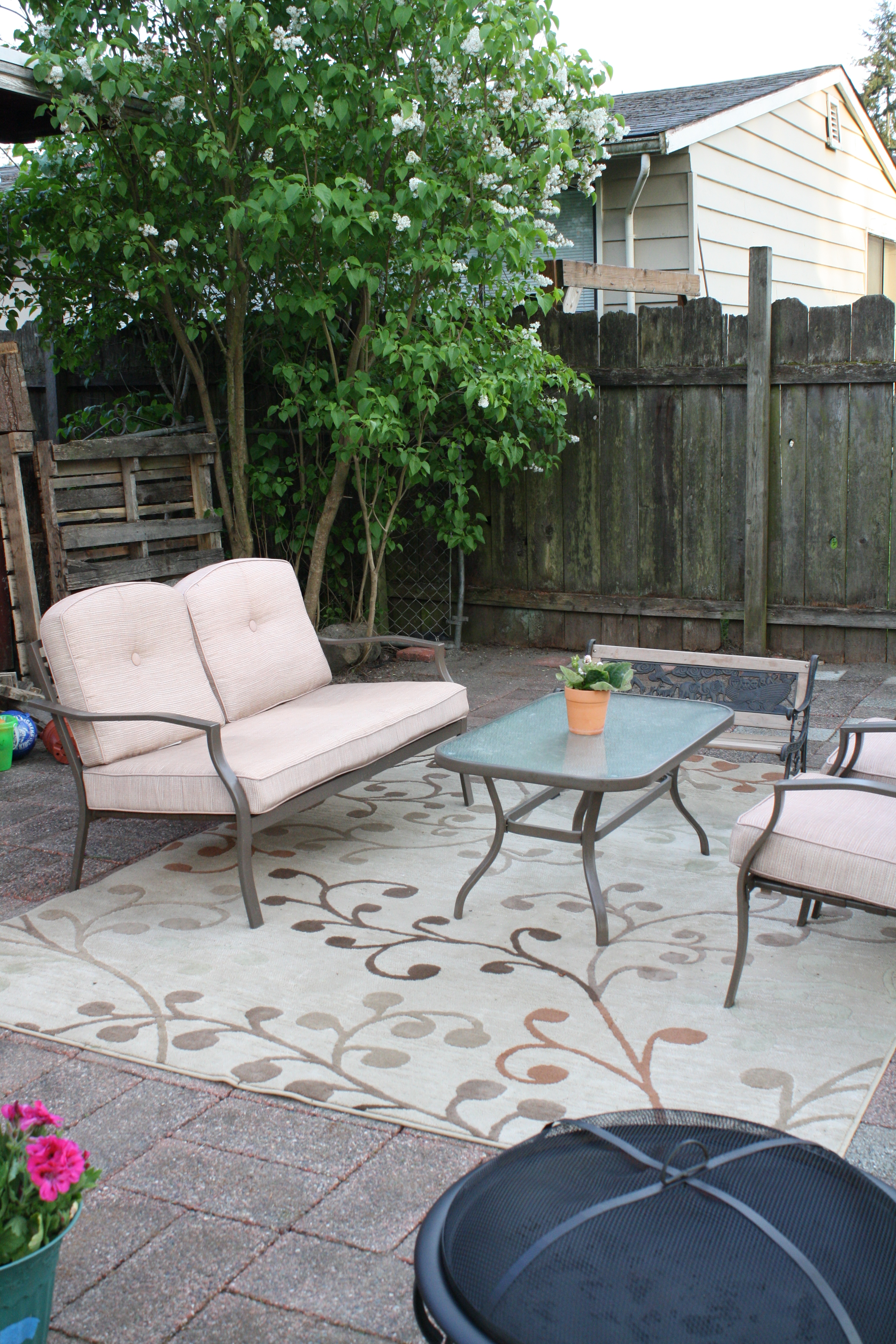Last spring I graduated from college. My mom tried for a long time to get tickets to the Oprah show but when she wasn’t able to get tickets she asked what I wanted. I decided patio furniture was what I wanted. I wanted a gift that my husband could enjoy as well. I never would have finished school if it wasn’t for him so I wanted it to be something we could both enjoy. My mom gave us an “allowance” to pick out what we wanted. We decided to go with a simple set from Wal-Mart so we could get a fire pit and umbrella as well.