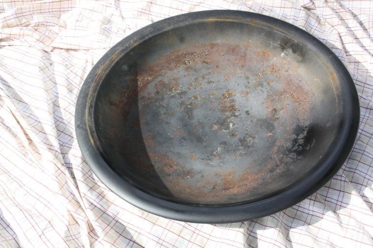 Last night I did a quick 10 min makeover on our patio fire pit. The fire pit had started to rust from being outside so I decided to spray paint it. We had some black high heat paint left over from another project and it worked like a charm!