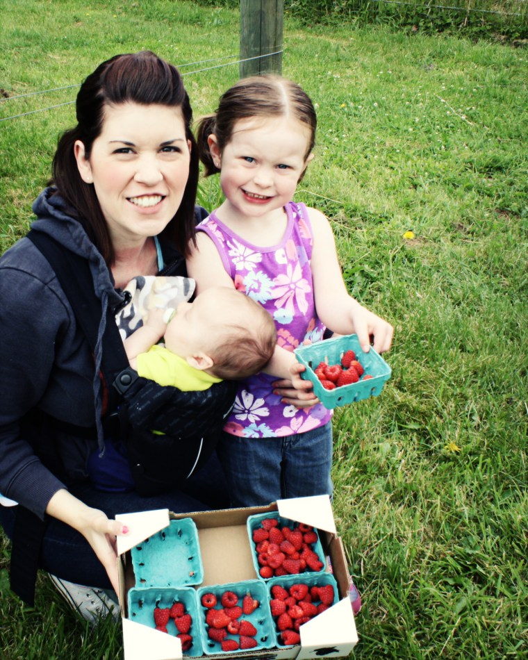 So away we went!! I strapped Bryson into the Baby Bjorn and Tay and got to picking!