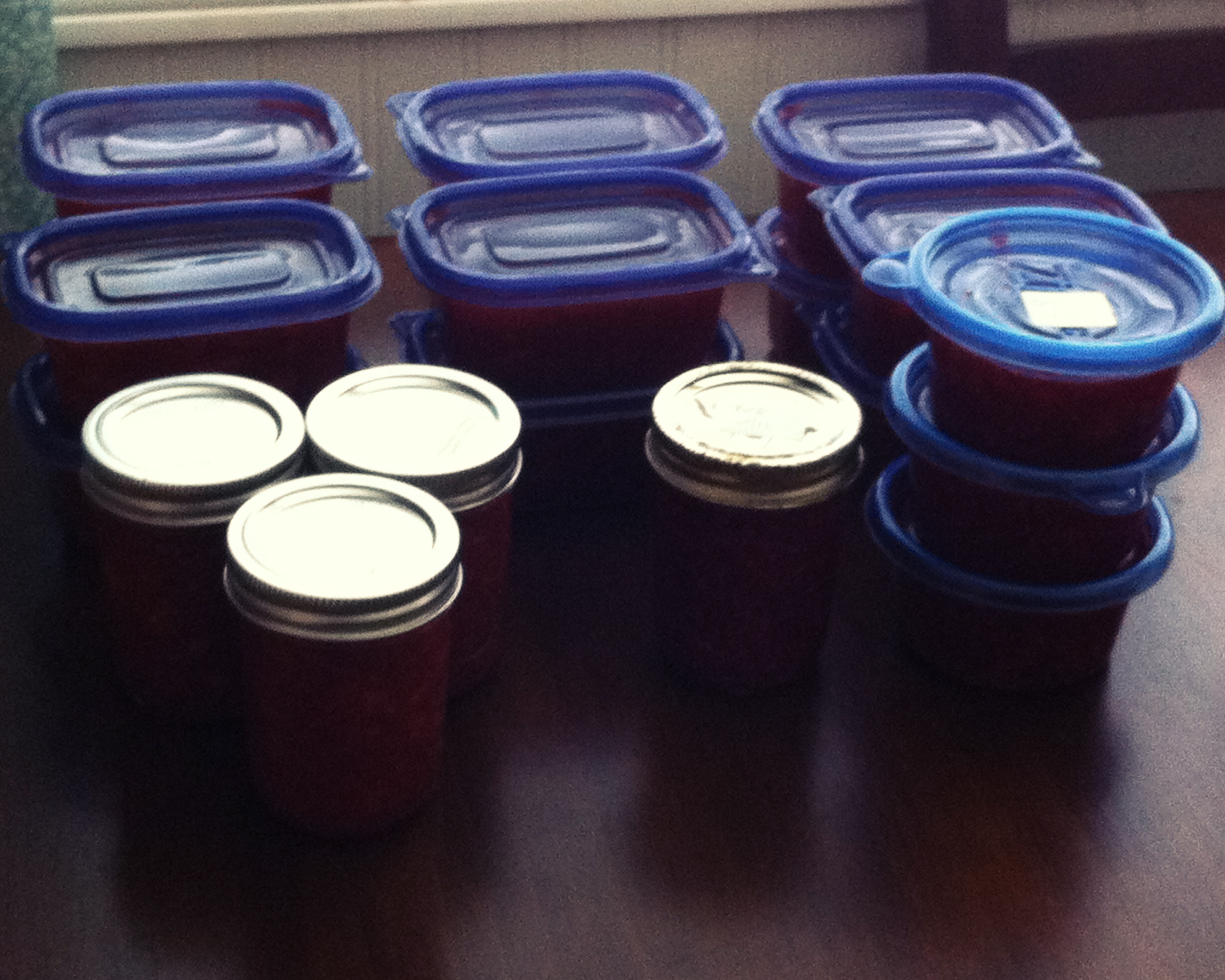 Last week I also spent a morning with my husbands grandma and my sister in law making strawberry and raspberry jam. We had a wonderful time with her and I ended up with 15 containers of strawberry jam and an additional 4 containers of raspberry jam!