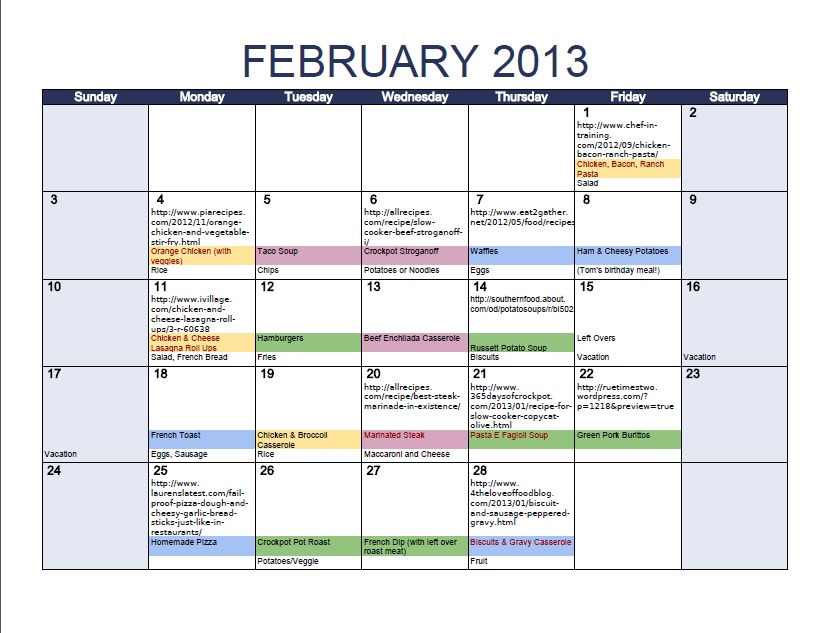 So the March Meal Plan…I went back and forth about whether or not to post one and I ultimately decided against it…here is why. Recently I’ve watched a few documentaries about food (Forks Over Knives, Vegucated, & Fat, Sick & Nearly Dead)…and they are really challenging me. Normally I make a lot of casseroles, and soups that start with cream of whatever or other canned items. The more I learned, the more I’m realizing I need to change the way I cook for our family. My plan is to eat “cleaner”. If you don’t know what that means clean eating is basically whole gains, organic meats, no processed foods, no refined sugars and lots of organic plant-based foods (fruits, veggies, beans, & nuts). The blog, “100 Days of Real Food” has been an amazing source as I navigate what this means for our family. Check it out here if you want more info (and recipes!!).